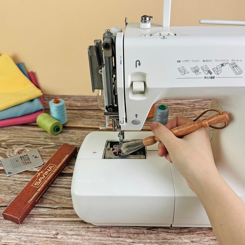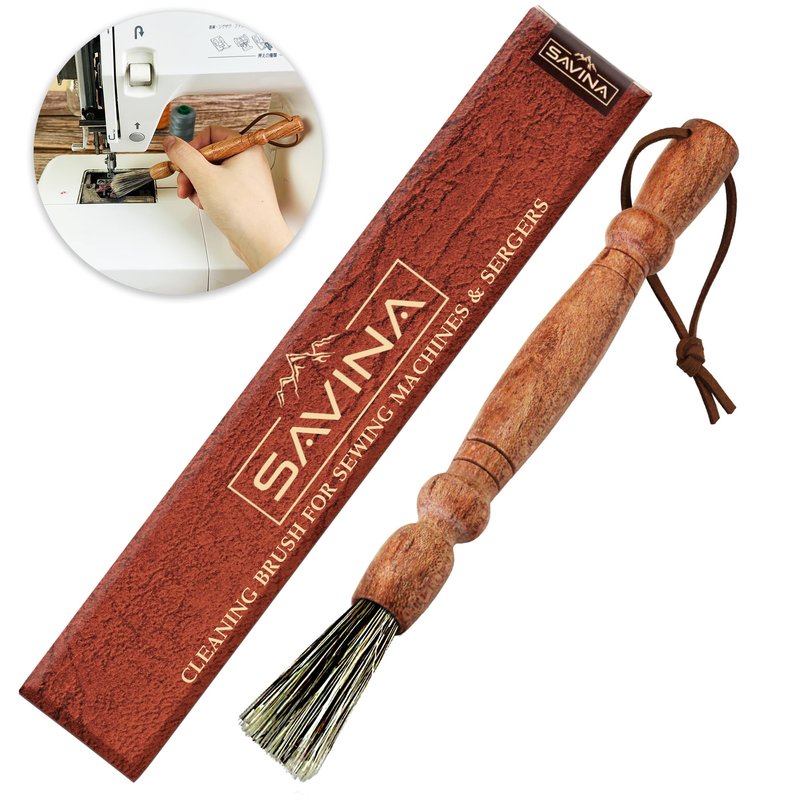 Savina Cleaning Brush for Sewing Machine & Sergers - Sewing Tool, Wooden Lint Brush with a built-in hanging strap. Brushing Lint Out of Sewing Machines.