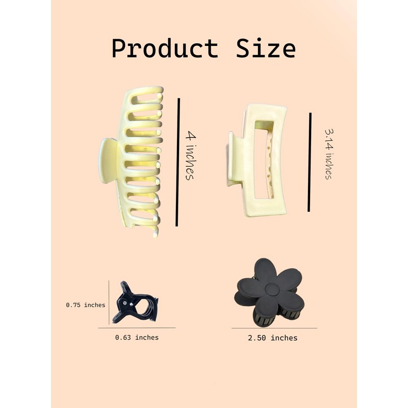 SavingsSphere Claw Hair Clips for Women: A Symphony of Style and Functionality In today’s fast-paced world, where style meets convenience, SavingsSphere introduces its premium range of Claw Hair Clips for women. This exquisite collection is not just an accessory; it's a statement of elegance and practicality. Designed for the modern woman, these clips cater to every hair type and style preference, promising both functionality and a chic aesthetic. Imagine stepping into a realm where your hair accessory isn’t just a tool, but an extension of your personal style. The SavingsSphere collection features a 4-inch chic claw clip and a 3.14-inch sleek rectangular clip, both meticulously crafted to complement any attire. Whether you’re dressing for a casual day out or a formal event, these clips are the perfect combination of elegance and flair. They are not just functional but make a bold statement about your unique fashion sense. The struggle of finding a hair clip that accommodates thick hair is now a thing of the past. Our large claw clips are ingeniously designed with an advanced spring mechanism that opens nearly 180 degrees. This feature ensures a steadfast grip on both dry and wet hair. Now, whether you’re rushing to a meeting or enjoying a breezy day at the beach, your hairstyle remains impeccable and intact all day. Unleash your creativity with our collection of 20 small black clips, aptly named 'Latte.' These versatile gems are your companions in creating a multitude of hairstyles. Whether you’re aiming for a sophisticated updo, a bohemian braid, or a simple half-up style, these clips provide endless possibilities to express your mood, match your outfit, and suit the occasion. Our black flower claw clip is more than an accessory; it’s a piece of art. This clip adds a touch of timeless elegance to your daily ensemble. It’s perfect for those days when you want to add a sophisticated flair to your look. These floral clips are not just functional; they’re a celebration of elegance, lifting your confidence and making you stand out in a crowd. Every clip in our collection speaks of the meticulous craftsmanship that goes into its making. The matte finish not only adds a contemporary touch but also ensures a scuff-resistant surface. The robust build of these clips promises prolonged use, making them a staple in your hair accessory collection. They don’t just style your hair; they are a symbol of the perfect fusion of durability and elegance. In conclusion, the SavingsSphere Claw Hair Clips for Women collection is a testament to beauty, functionality, and durability. These clips are not just hair accessories; they are a lifestyle choice for the modern, discerning woman. By choosing SavingsSphere, you’re not just styling your hair, you’re embracing a world where elegance and practicality go hand in hand. Embrace this journey of style with SavingsSphere and redefine the way you adorn your hair.