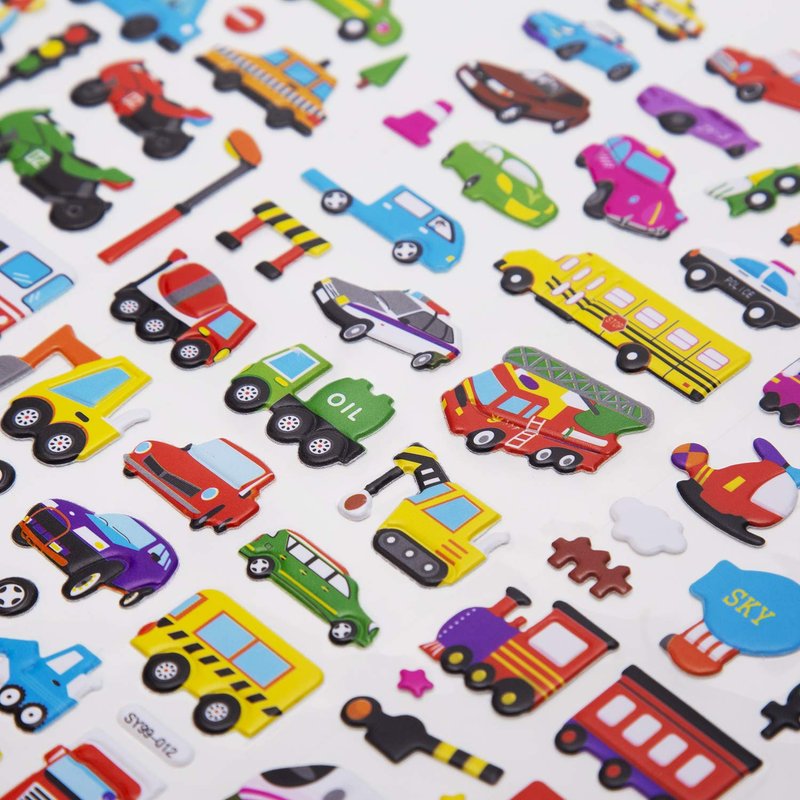 • VALUE PACK OF STICKERS FOR KIDS: Total of 12 sheets with 6 different stickers(2 Sheets for Each Style ), more than 400 pieces stickers to makes for hours of creative activity fun! Such as cars, trains, airplanes, fire trucks, helicopters, motorbikes, school buses, spaceships and more various stickers.