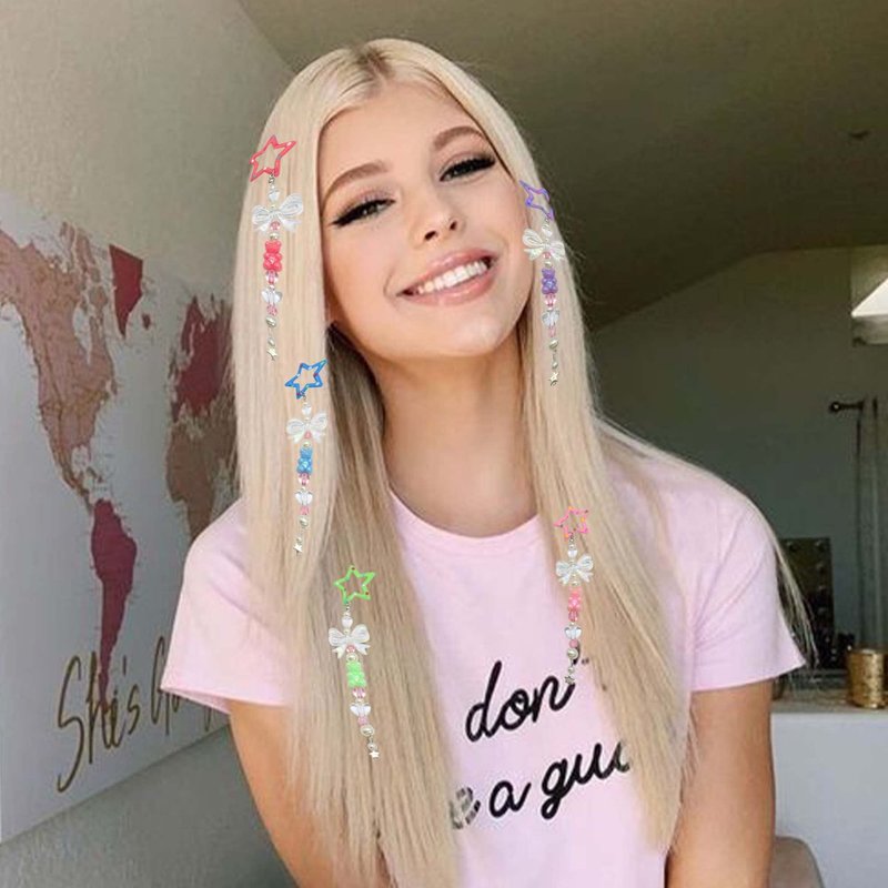 - Specially Designed Y2K Star Hair Clips: Colorful star element Hair Barrettes with a new and fashionable beaded design will make your match more attractive. The bowknot on the beads made of aurora material will emit a shining colored light and the cute resin bear adds a touch of cuteness, and with the pearls and pink beads together, it will make you more fashionable and different when you wear it.