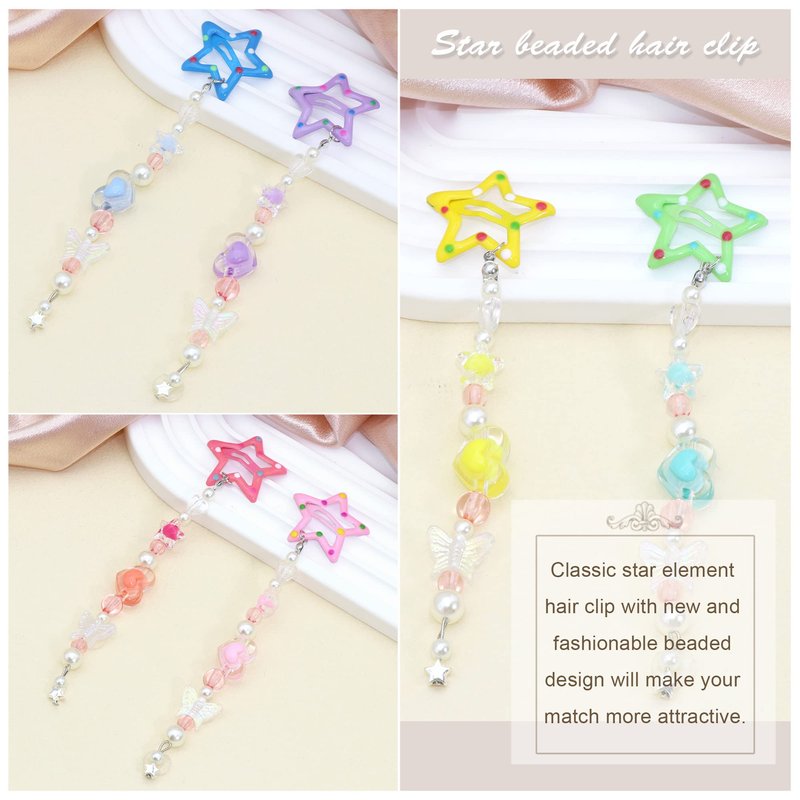 These 6 pieces of star butterfly pearl beaded hair clips in six colors,include pink、yellow、purple colors and so on,