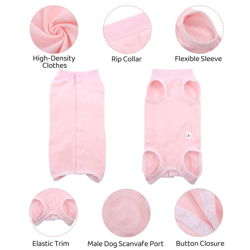 - CONE E-COLLAR ALTERNATIVE: Compare with the E-collar cone, The dog onesie for surgery is more convenient and flexible, It adopts a full-body design, snuggly but not tight, Making the dog walk, eat, run and pee freely. Increasing your pet's mobility, and reducing stress, The dog's snugly bodysuit provides comprehensive wound protection and helps them recover faster. It is a perfect alternative to the cone of shame/satellite dish that he/she has to wear on the head.