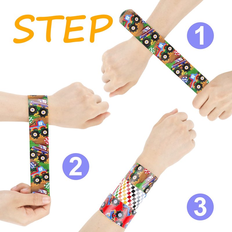 48 PCS Monster Trucks Party Favors Slap Bracelets Wristbands Party Decorations Supplies.