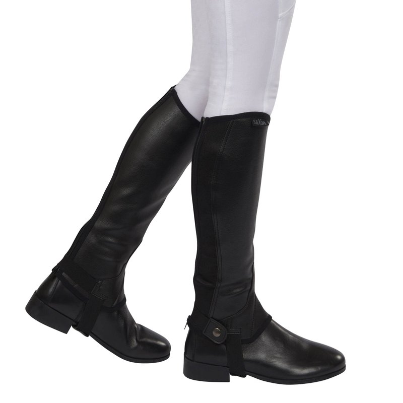 SAXON. Equileather Half Chaps, Black, Adults Medium