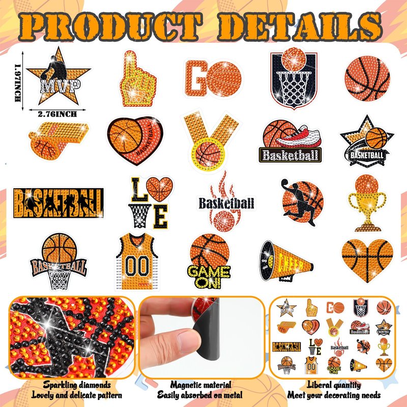 • Ease of Use and Versatility: beyond their aesthetic, these basketball diamond painting stickers are easy to apply and easy to stick and remove, due to the built in magnets; Whether you're a beginner or a seasoned diamond art enthusiast, you'd find this kit extremely convenient