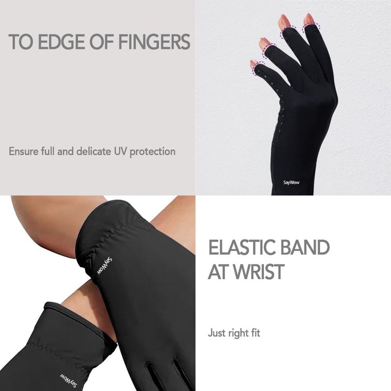 - MULTI SCENES UV PROTECTION: These UV blocking gloves ensure full UV protection for gel nail manicure, driving, outdoor activities & sports like cycling, hiking, gardening, relaxing.