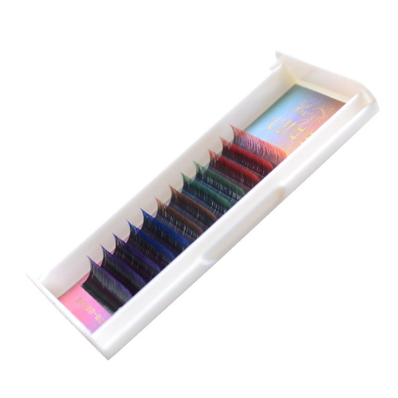 Scala 5 Colors Mix Gradient Rainbow Colorful 12 Rows/tray C Curl 0.10 Flash Eyelash Extension Nature Long Gradient Mink False Individual Eye Lashes Makeup Mink Fake False Eyelashes (13mm)
