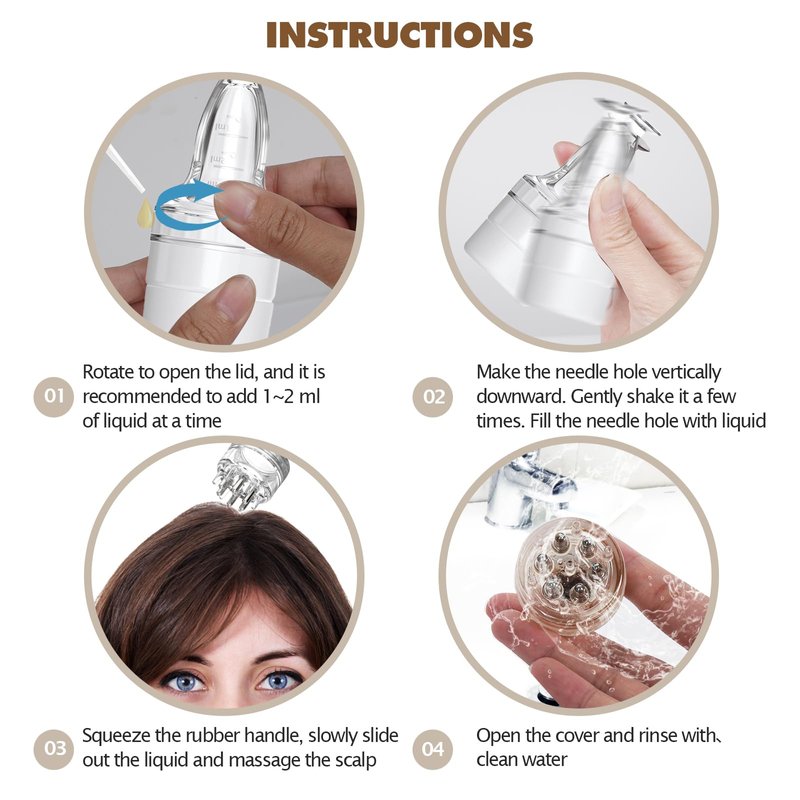 - 【Easy to Use 】 After adding liquid, make the ball teeth fit against the scalp and slide back and forth. The medicine will naturally and slowly flow out. If you want to accelerate the liquid outflow rate, simply apply slight pressure on the soft silicone cover with your thumb to double the liquid output.