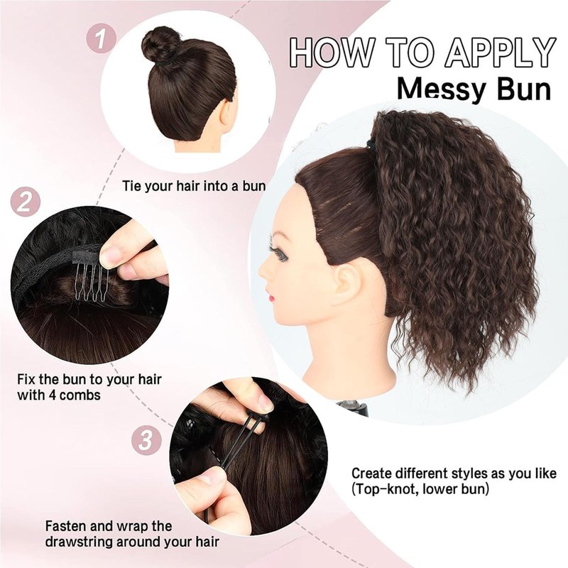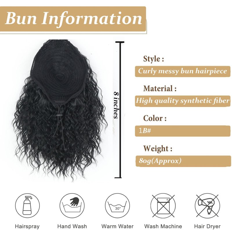 - [Natural-looking style]The elastic drawstring curly hair bun aims to create a natural-looking curly bun hairstyle without the need for heat styling or extensive hair preparation. It provides a quick and easy way to achieve a curly bun without using curling irons or rollers