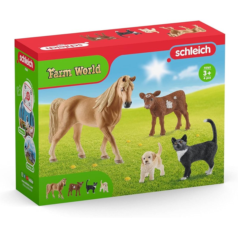 Schleich Farm World 4pc Animal Figurine Starter Playset - Educational Farm Animal Collection Starter Kit Toy with Cat, Horse, Puppy, and Calf, Durable for Boys and Girls, Gift for Kids Ages 3+