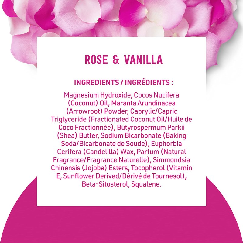 - Certified 100 percent Natural Origin Fragrance – Rose and Vanilla Deo features a heavenly bouquet of roses with a hint of sweet, warming vanilla, made with essential oils
