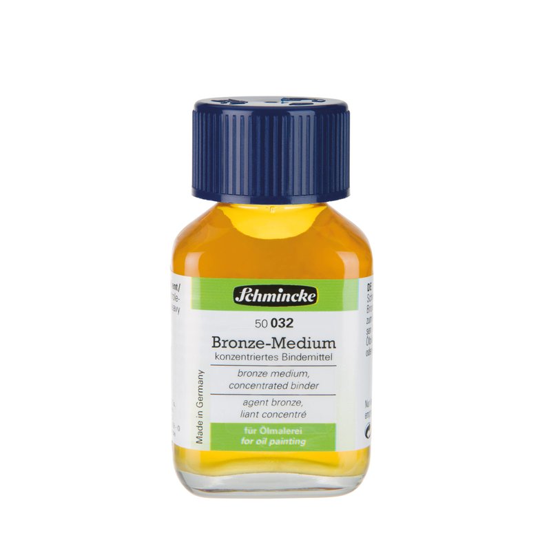 - 🎨 Bronze medium: Ready-to-use binder for Schmincke oil bronzes, 60 ml bottle, for pre-primed objects such as wood, metal or plaster. Mixed with oil bronzes, the ink film drys smudge-proof and waterproof, remains removable after drying with turpentine oil or turpentine substitute.