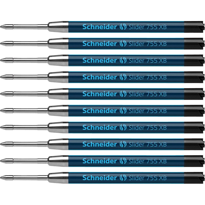 Schneider Slider 755 XB (Extra Broad) Ballpoint Pen Refill, 1.4 mm, ISO Format G2, Black Ink, Box of 10 Refills (175501)