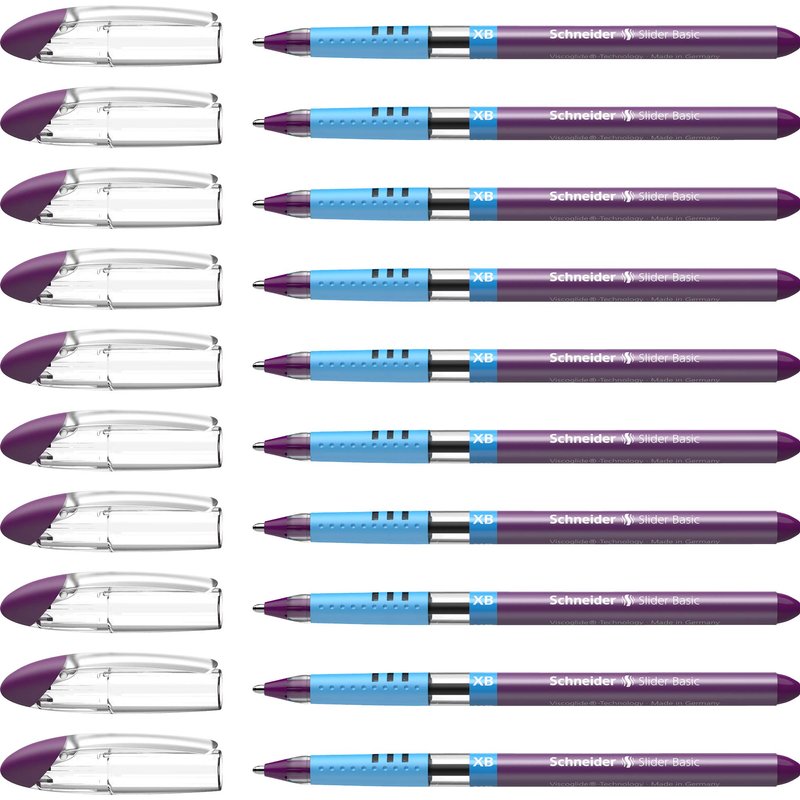 Schneider Slider Basic XB (Extra Broad) Ballpoint Pen, 1.4 mm, Transparent Barrel, Violet Ink, Box of 10 Pens (151208)