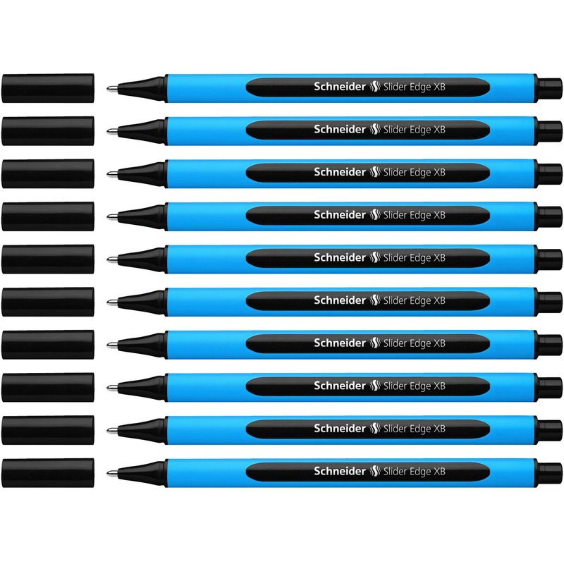 Schneider Slider Edge XB (Extra Broad) Ballpoint Pen, 1.4 mm, Light Blue Barrel, Black Ink, Box of 10 Pens (152201)