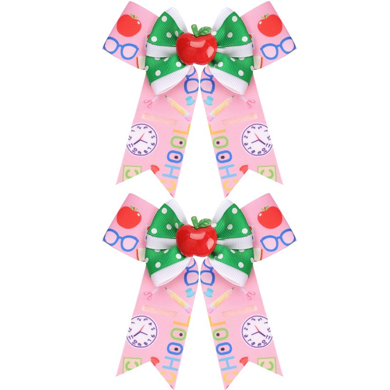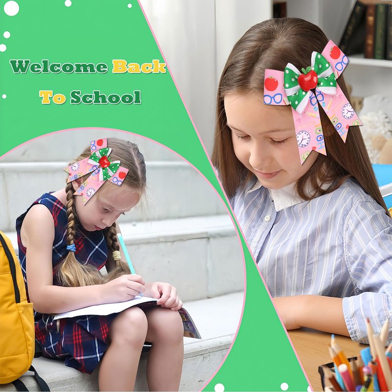 - 3D Ceramic Design: Each school bows clip features 3D ceramic patterns of a pencil, apple, blackboard, and book, adding a vivid and dimensional touch that perfectly captures the back-to-school spirit.