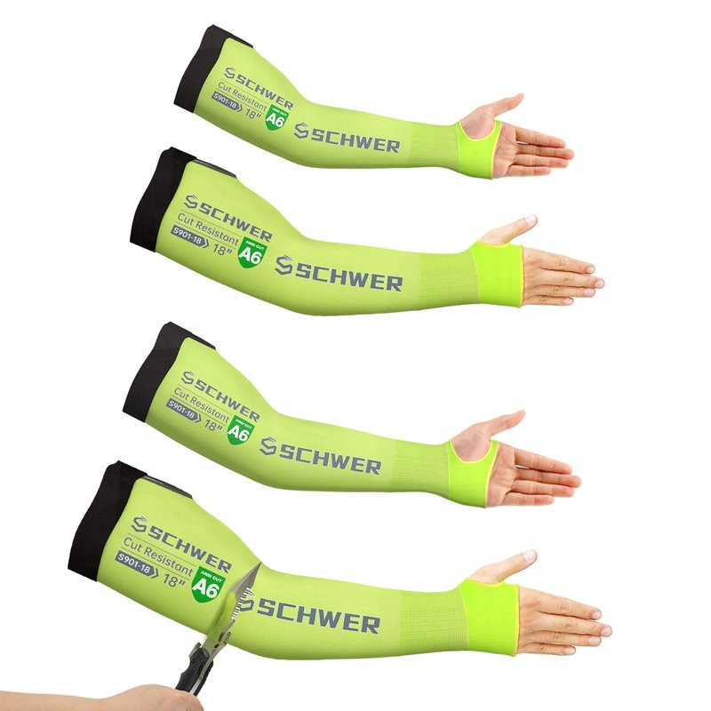 Schwer 2 Pairs ANSI A6 Cut Resistant Sleeves, 18 inch Protective Arm Sleeves with Thumb Hole for Arm Work Protection, Arm Guards for Gardening, Cutting Metal, Repairing, Kitchen, Pet Grooming (Yellow)