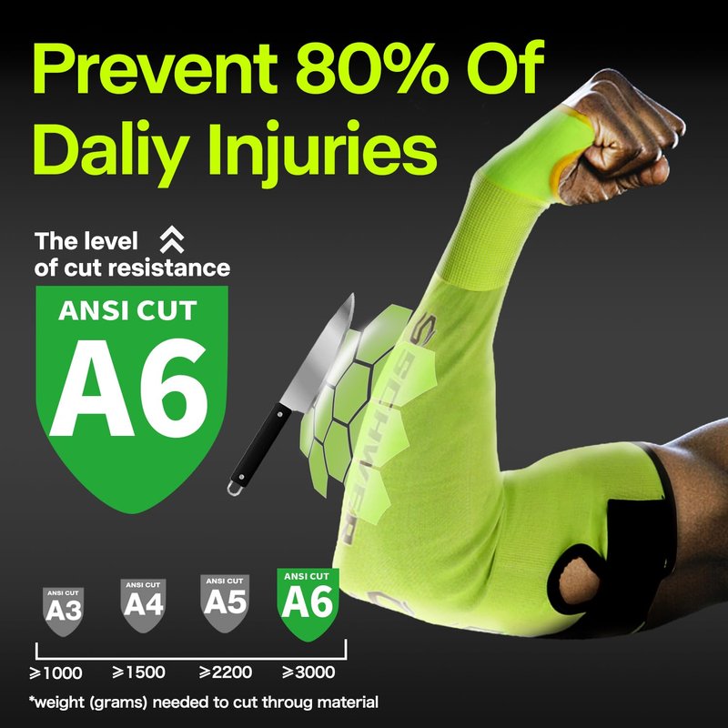 - 【ANSI A6 CUT RESISTANT】-Cut protection level ANSI A6 is approved by the ISEA, which means the sleeves can be used for heavy-duty cut hazards against the cardboard, metal, knives, razors, scissors, and other sharp cutting instruments.