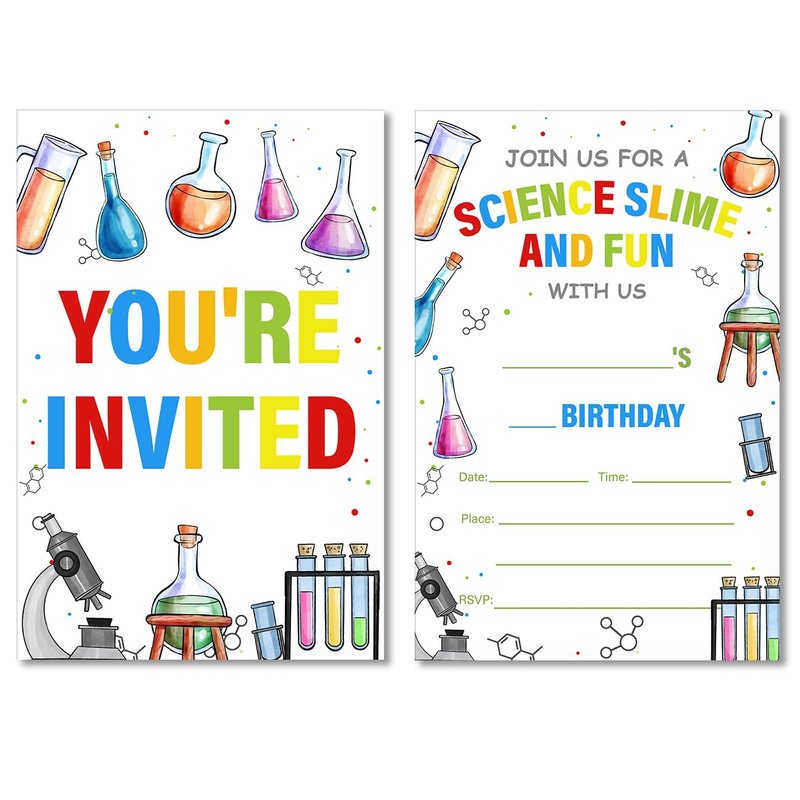 Science Birthday Invitations with Envelopes Set of 20 Science Lab Party Invites Fill in Blank