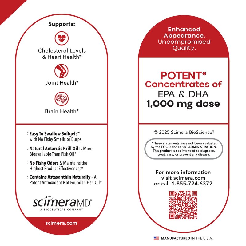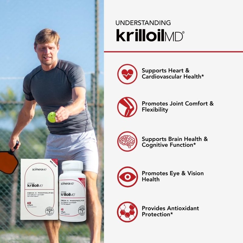 ScimeraMD® KrillOilMD Antarctic Krill Oil Omega 3 DHA EPA Supplement with Astaxanthin for Heart, Brain, and Joint Support, 60 CT