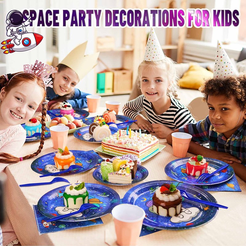 - Convenient and Easy Enjoy Your Party- Outer Space party Packs are the perfect for your baby shower or birthday party decorations.Paper plate and napkins can save you time in cleaning up. After the kids parties just toss the party supplies out, so you can enjoy more fun with friends and family in these astronaut party decorations.