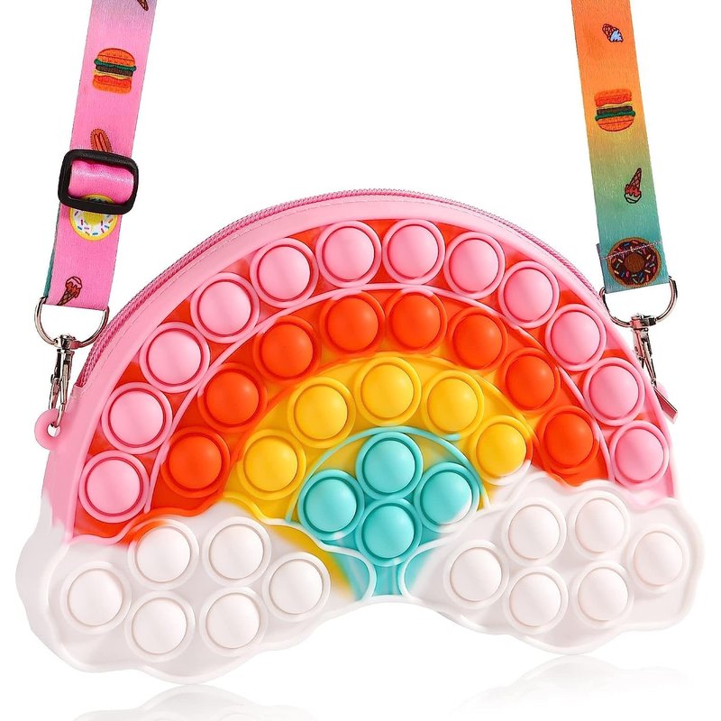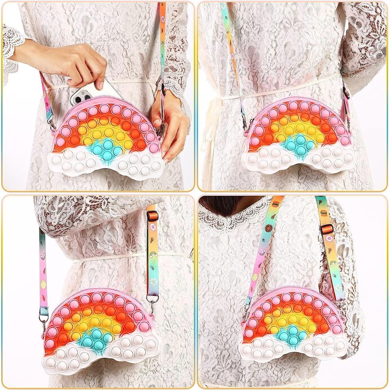SCIONE Girls Toys Gifts Pop Shoulder Bag Fidget Toys , Christmas Gifts for Teens Kids Daughter Sister Her,Rainbow Purse Crossbody Bag for Goodie Bags Party Favor Toy , Party Birthday Gifts Supplies Birthday Gifts Party Goodie Bag Stuffers,Cute Trendy Stuff