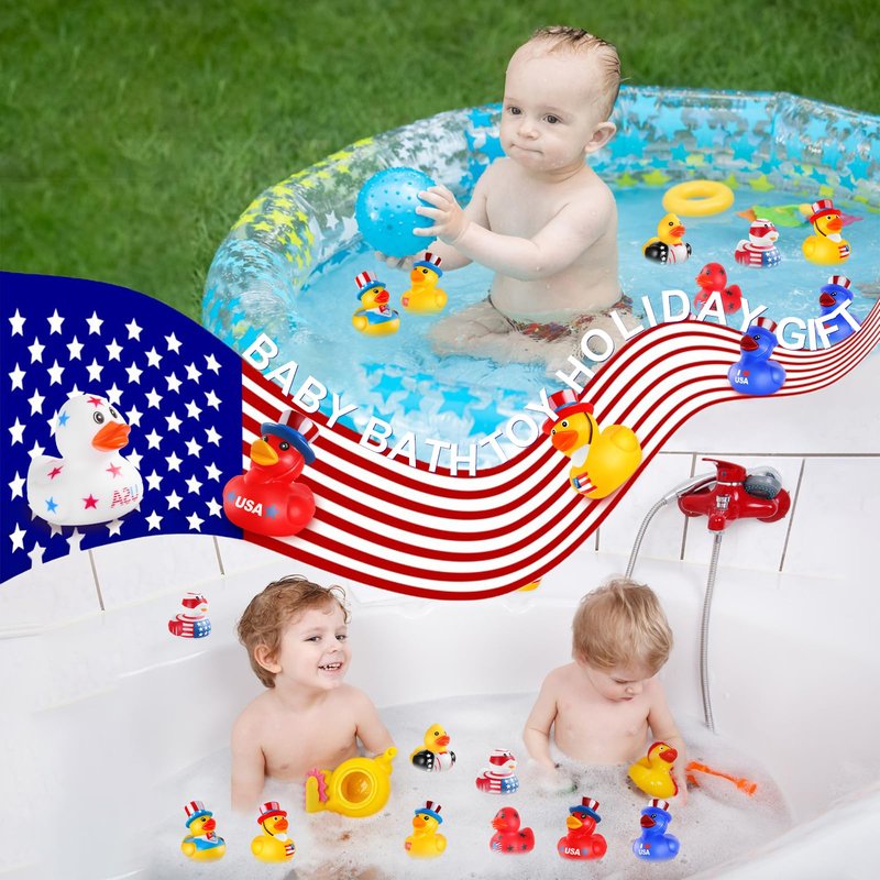 - Fun Bath Time: Patriotic themed small rubber duckies float on the water for those with little ones in the house to play with in the bath; These toys will help them enjoy bath time and learn about different colors.