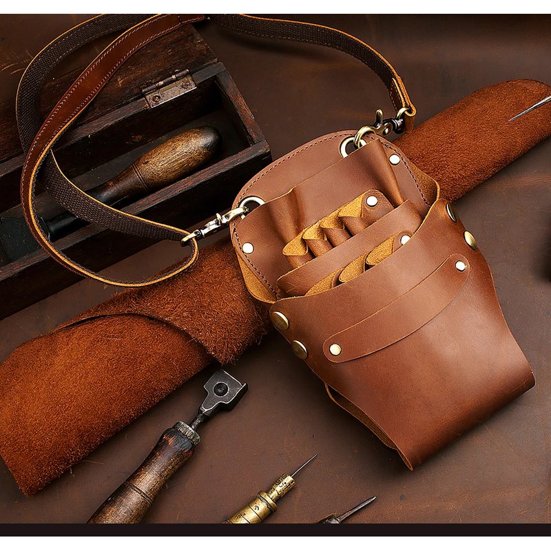 1 pack of leather Scissor Bag with adjustable belt