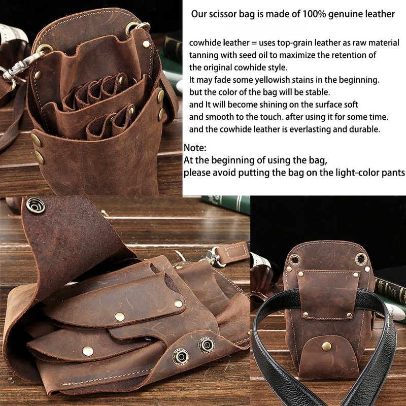 - 【Premium Material】This professional hairdressing scissor bag is Made of 100% top cowhide leather, which provides hard-wearing and easy-to-clean. Vintage style gives your life to be individual.