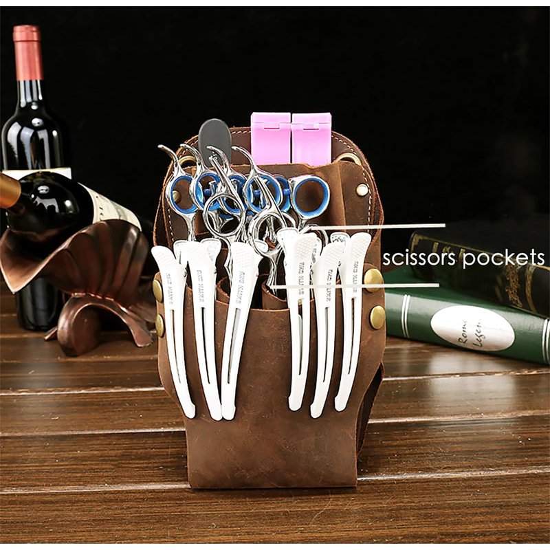 Scissor Pouch Belt, Cowhide Leather Salon Barber Hairdressing Scissor Holster Hair Stylist Shears Holder Tools Waist Bag with Adjustable Strap for Combs, Hair Clips