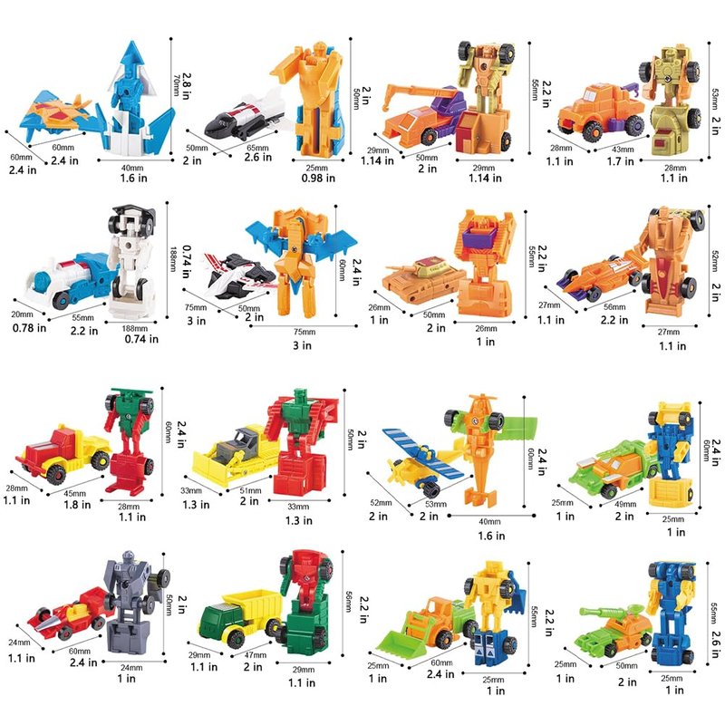 - 🚚Colorful and Realistic Design: These tiny Mini Deformation car kit are realistic with joints in a smaller scale, Ability to transform into a simple robot,attracts the kid's attention and Role playing, Deformed car are perfectly in the role Sea, land, air, battle games,