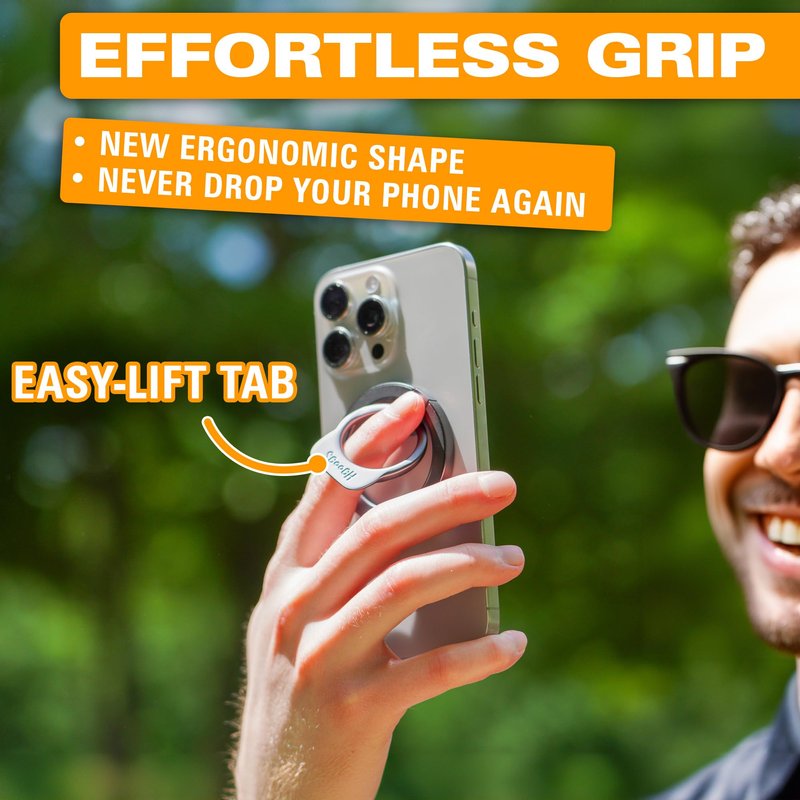 - Universally Compatible: The MagRing 2.0 grip and stand works with every device. It's compatible with MagSafe for iPhone 12 to iPhone 15 with their built-in MagSafe-compatible magnets. It also works natively with MagSafe-compatible cases. The MagRing 2.0 comes with a magnetic ring with adhesive that you can stick to the back of any phone or case!