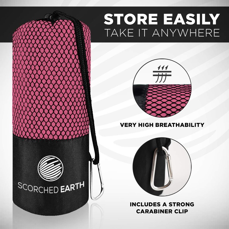 ScorchedEarth Microfiber Travel & Sports Towel Set - Quick Dry, Super Absorbent, Compact, Lightweight - for Camping, Backpacking, Hiking, Beach, Yoga, Swimming - Includes 2 Sizes + Carrying Bag & Clip