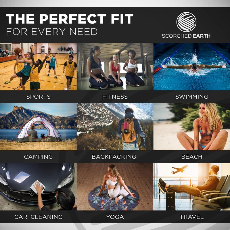 - ★ MULTIFUNTIONAL: The Scorched Earth Microfiber Towel’s compact size combined with its ability to absorb far more water and dry much faster than an ordinary towel makes it perfect for almost any use! Whether you are going for a quick swim at the beach, traveling with limited space for a bath towel, attending hot yoga, hitting the gym, running a marathon, or setting up camp after a long hike, our towel is multifunctional, durable, and reusable, allowing it to get the job done over and over again.