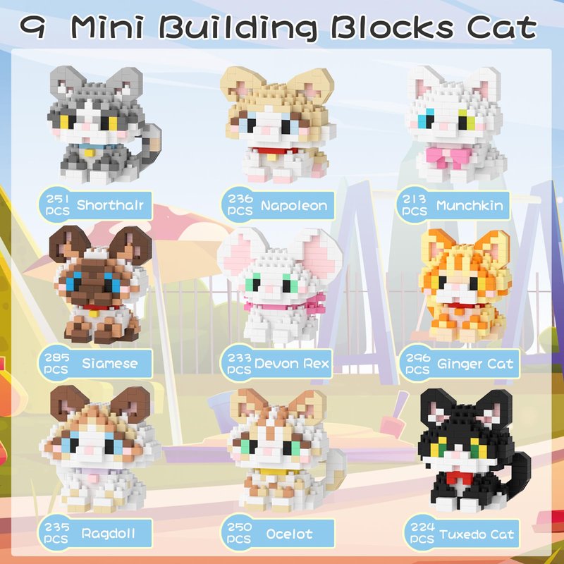 - Regal and Unique, Capturing the Essence of Noble Cats: This collection of building blocks brings to life eight exquisite cat breeds, from the majestic Napoleon to the enigmatic Munchkin. Each cat is crafted to embody the unique elegance and personality of its breed, whether it's the striking features of a Siamese or the fluffy coat of a Devon Rex. This set captures the essence of noble cats in every detail.
