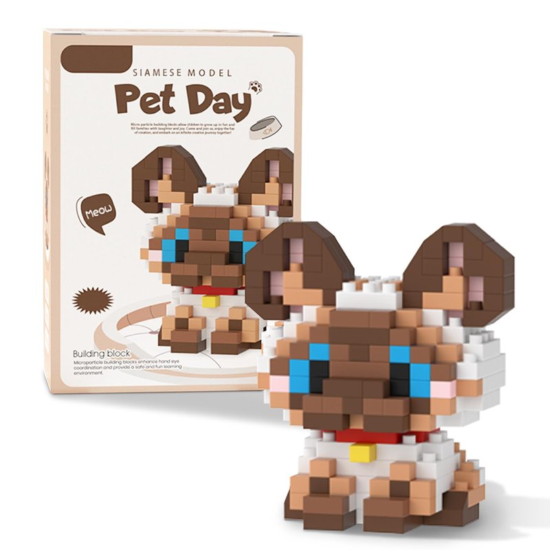Scosloo Micro Mini Building Blocks Cat Series, Animals Model Toy Party Favors for Kids, Creative Building Blocks, Birthday Gift for Boy Girl Ages 6-12+ (Siamese)