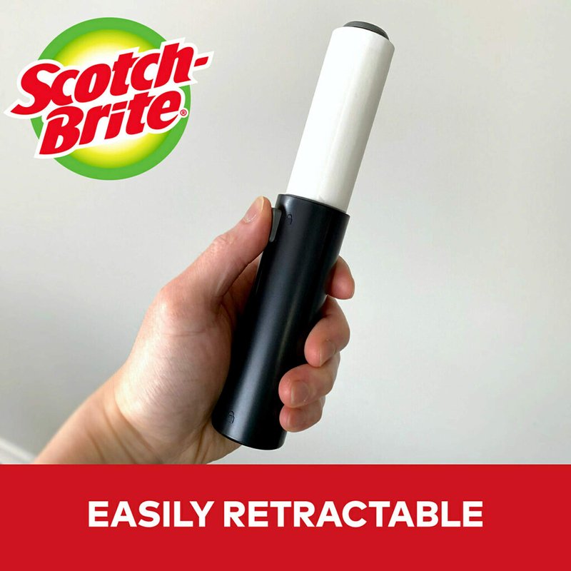 - The only lint roller made with Scotch brand adhesive. Scotch Brite Lint Roller can be used on plants, coats, sweaters, dresses suits, formal wear, and more. Optimal adhesive removes lint and hair without damaging fabric. The sheets are guaranteed to tear cleanly every time. The Scotch Mini Roller is ideal for on the go removal of lint and pet hair.