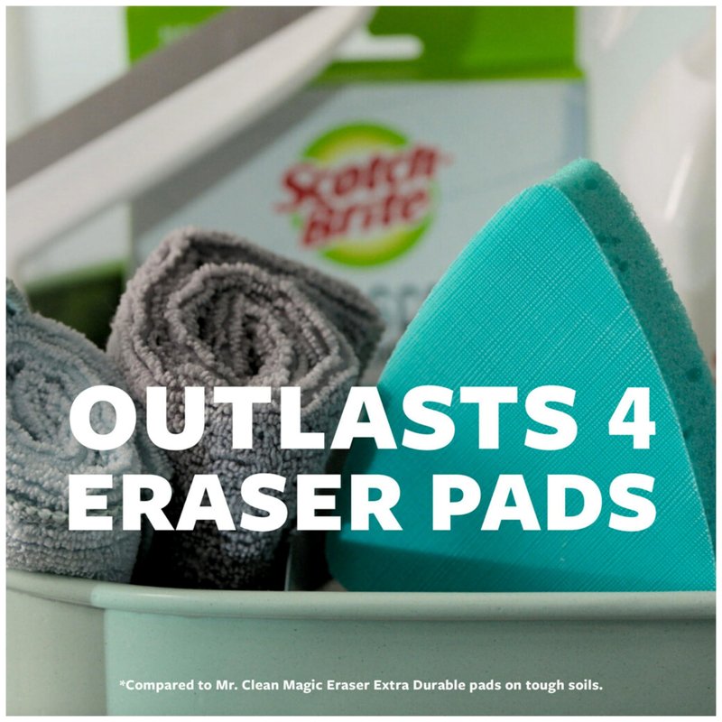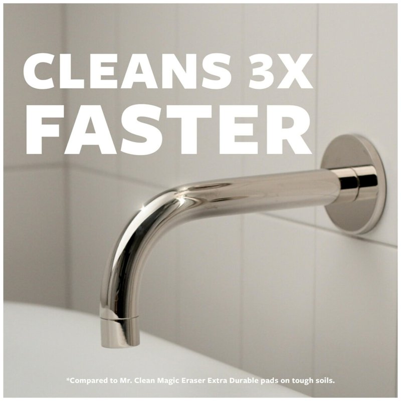 - 3X FASTER CLEANING: Scrubbing pad cuts through buildup three times faster than eraser pads [compared to Mr. Clean Magic Eraser Extra Durable pads on tough soils]