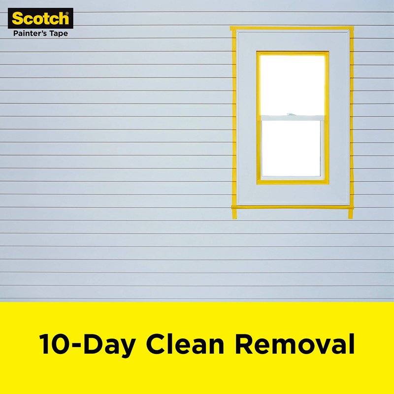 - DAMAGE-FREE PAINTING PREP: Painting tape can stay on exterior surfaces for up to 10 days in all kinds of weather conditions, and it removes easily without tearing, slivering or leaving a sticky residue behind