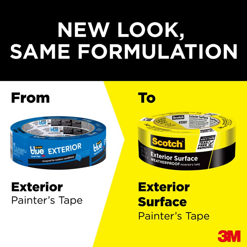 - READY. SET. PAINT!: 1 roll of 1.41 inch wide Scotch Exterior Surface Weatherproof Painter's Tape, an innovative poly-tape that can handle wind, rain, humidity and direct sunlight