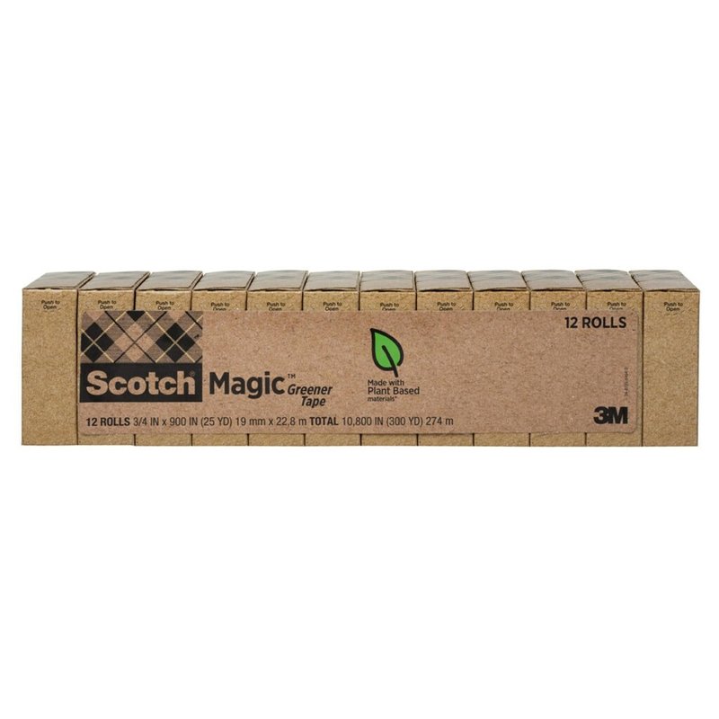 - ENVIRONMENT-FRIENDLY TAPE: 12 rolls of Scotch Magic Greener Tape, made from 53% plant-based material