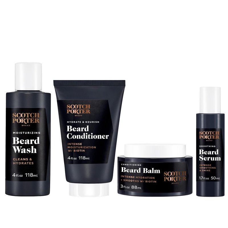 Scotch Porter Beard Kit has everything you need to rock your best beard every day. Each product adds shine and hydration to coarse, dry beards. Made with clean, non-toxic ingredients, this beard balm, beard conditioner, beard wash and serum kit hydrates, moisturizes and conditions the beard while moisturizing and maintaining the skin under the beard. Biotin Liposomes deliver vitamins essential to hair growth, while stinging nettle leaf helps promote strength as a source of vitamins and amino acids. White Willow Bark, long known and used for its anti-inflammatory properties, helps reduce redness and flakiness, promoting soothed skin beneath the beard.