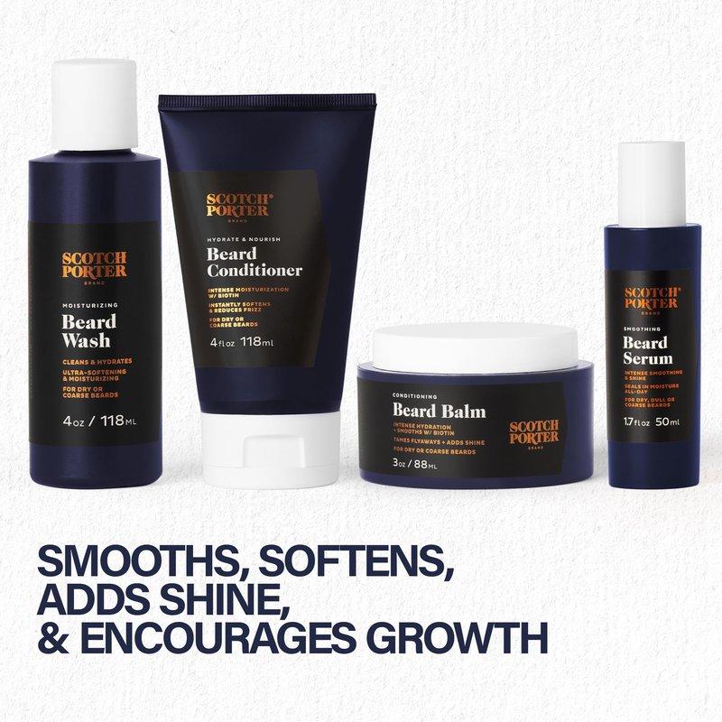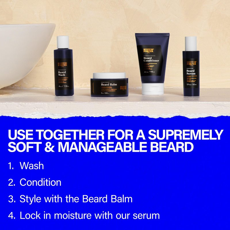 Scotch Porter Beard Kit – Cleanse, Moisturize, Soothe & Style Coarse, Dry Beard Hair while Encouraging Growth for a Fuller/Healthier-Looking Beard – Includes Wash, Conditioner, Serum & Balm