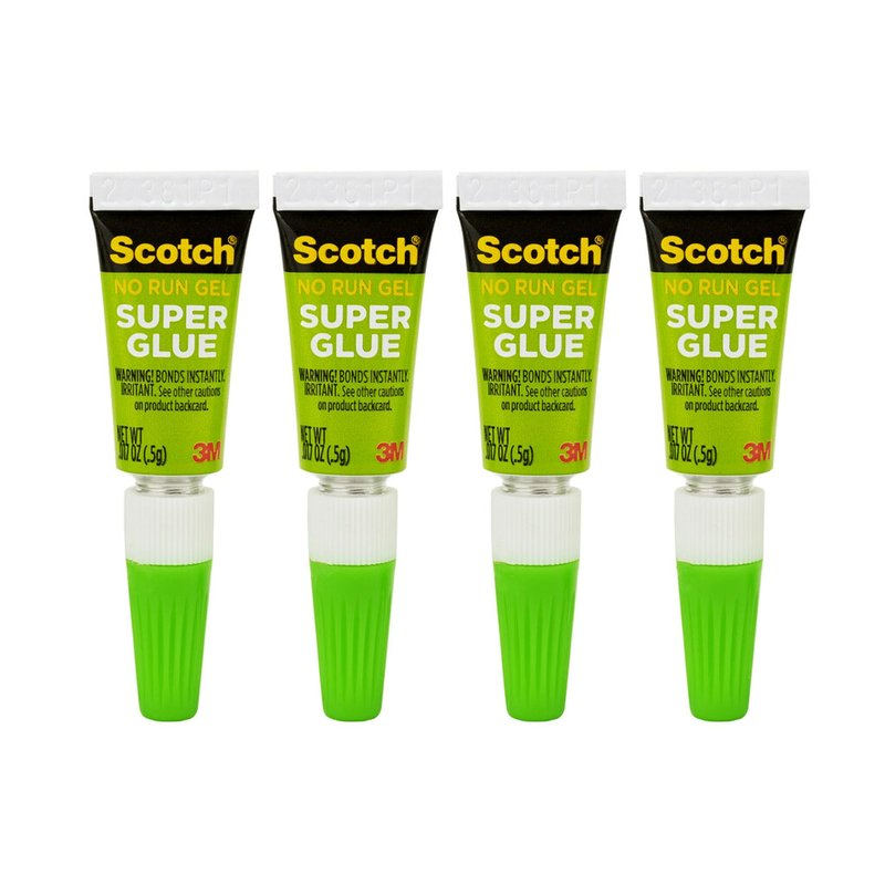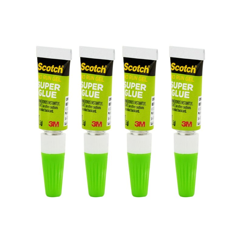 Scotch Super Glue Gel, 4-Pack of Single-Use Tubes, .017 oz each, Fast Drying, No Run Gel Formula (AD119)