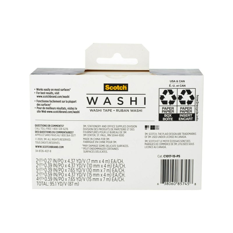 Scotch Washi Tape, Glitter Metallic Design, 15 Rolls, Great for Bullet Journaling, Scrapbooking and DIY Décor (C1017-15-P6)