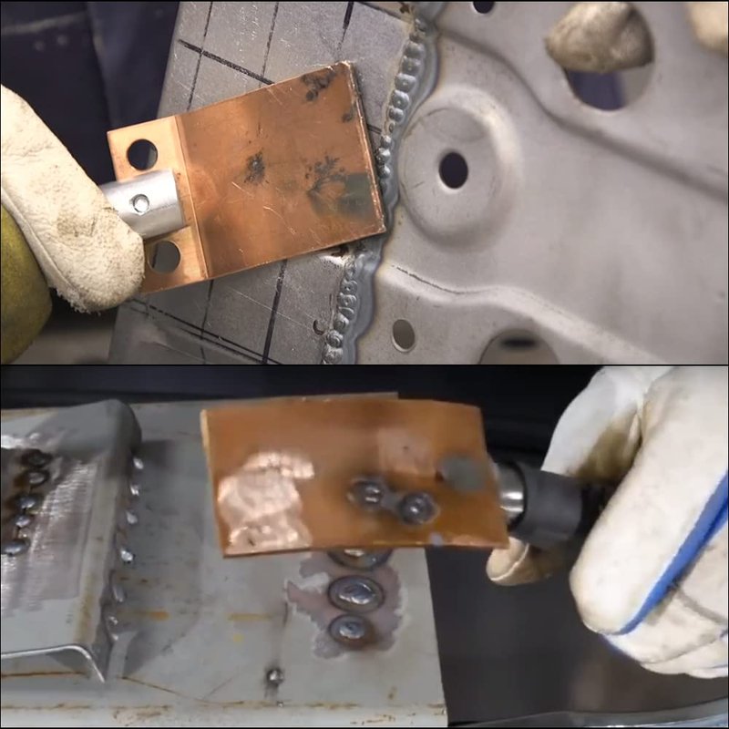 - {Plug Weld Sheet Metal Holes In Seconds}------- This Welding Spoon Copper creates a precise spot weld without cutting scrap metal plugs