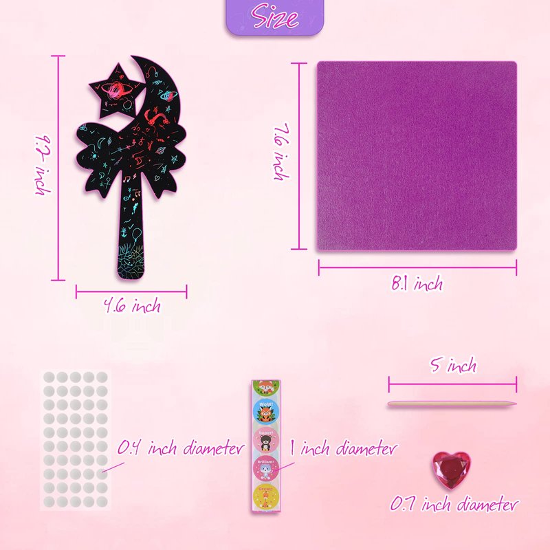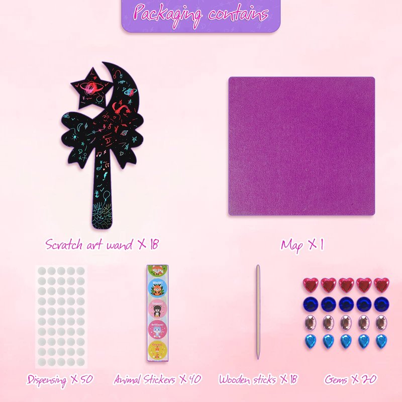 - 【Customize unique wand scratching with 147 props】 147 Props Gem stickers, wands, and imagination produce a myriad of interesting and unique combinations, which allows each child to have their own rainbow scratch paper wand
