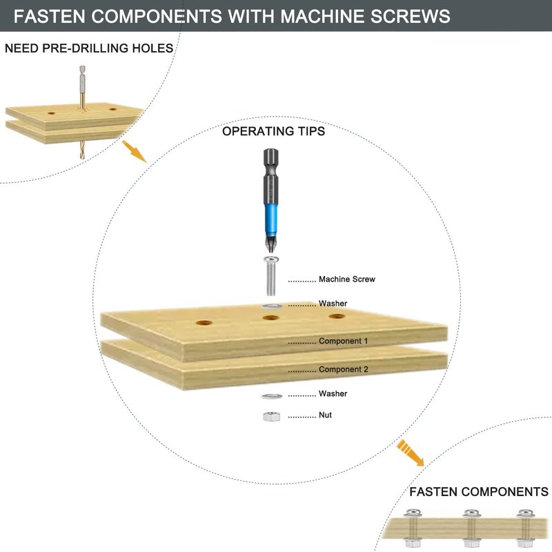 - M4 MULTI-LENGTH: This screw kit provides various lengths of pan head phillips screws, nuts and washers in M4-size. In case furniture is not pre-punched, use the M4 woodworking drill bit we provided.