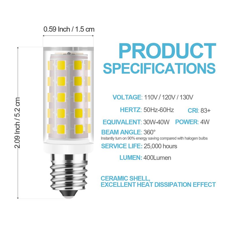 - 📌(1 PACK) DIRECT REPLACEMENT FOR📌- ✔USE for indoor or outdoor fixtures, Sewing Machine,Freezer, Refrigerator,Microwave, Range/Stove/Oven, Washer/Bath Fan and more.✔Compatible with 100 or 130 Volt Applications “NON-Dimmable”.- Light meter tested to be among one of the brightest LED bulbs on the market. Clean light without the ugly hazy purplish tint. Producing 400+ Lumens, equivalent to a 40 Watt halogen bulb.
