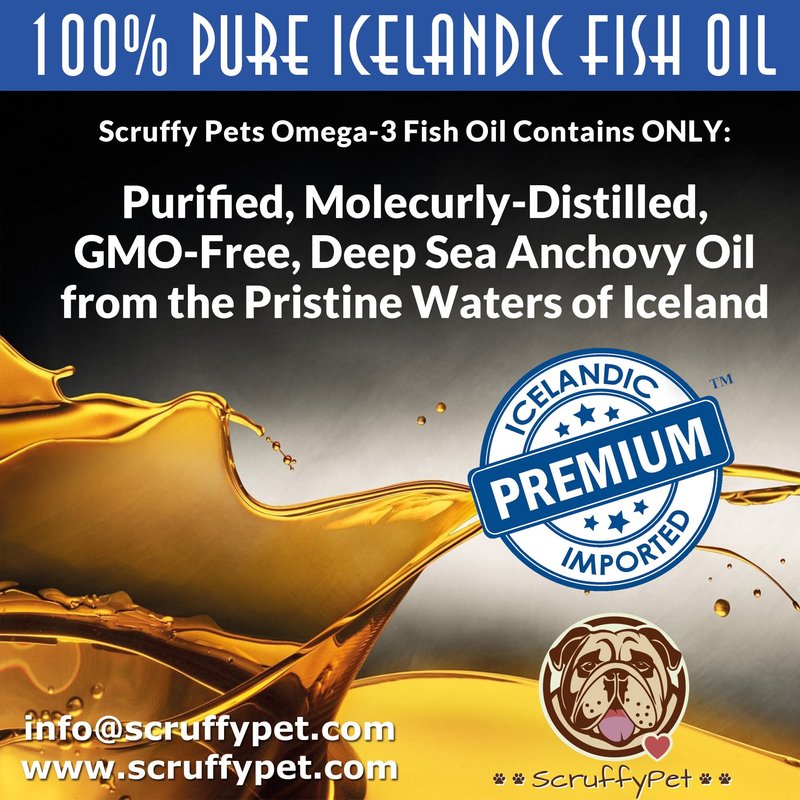 Thats why we have developed the purest omega-3 fish oil for dogs - The complete dog health care supplement, unlike a a slew of inferior products out there ScruffyPet dog fish oil brings the most potent levels of EPA and DHA in a chewable softgel - NO SMELL, NO FUSS!